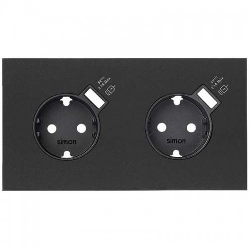 10020211-238 > Kit front 2 elementos 2 bases con 2 cargador USB Simon 100 Negro Mate |